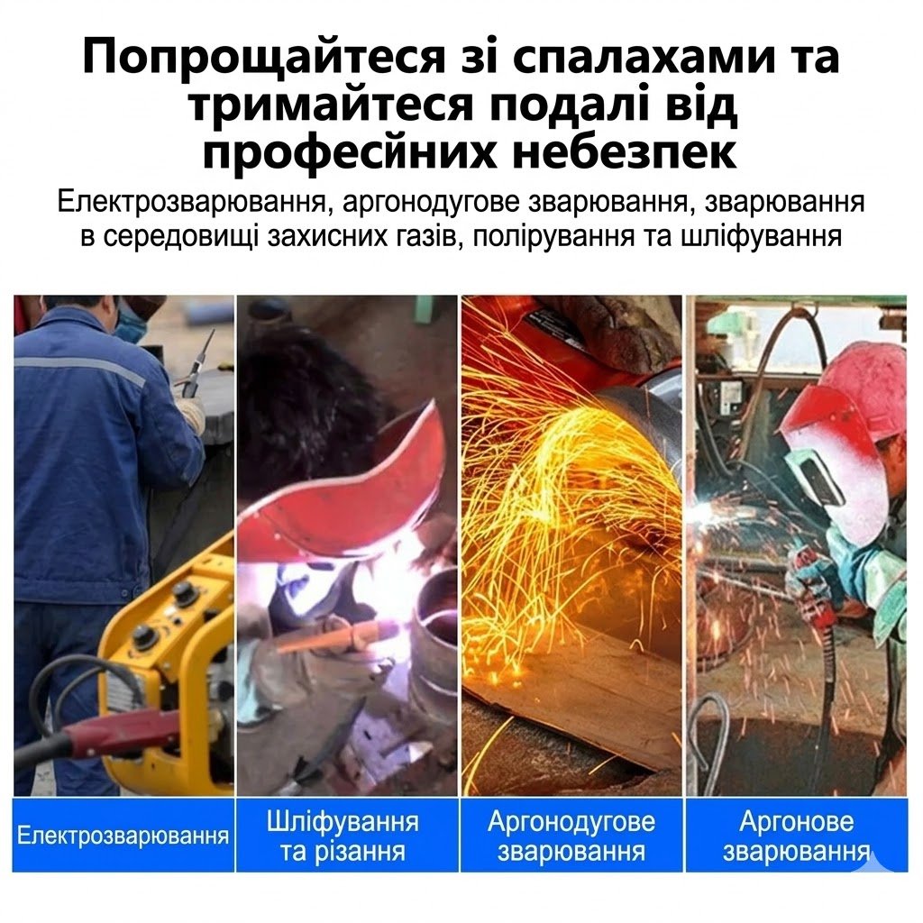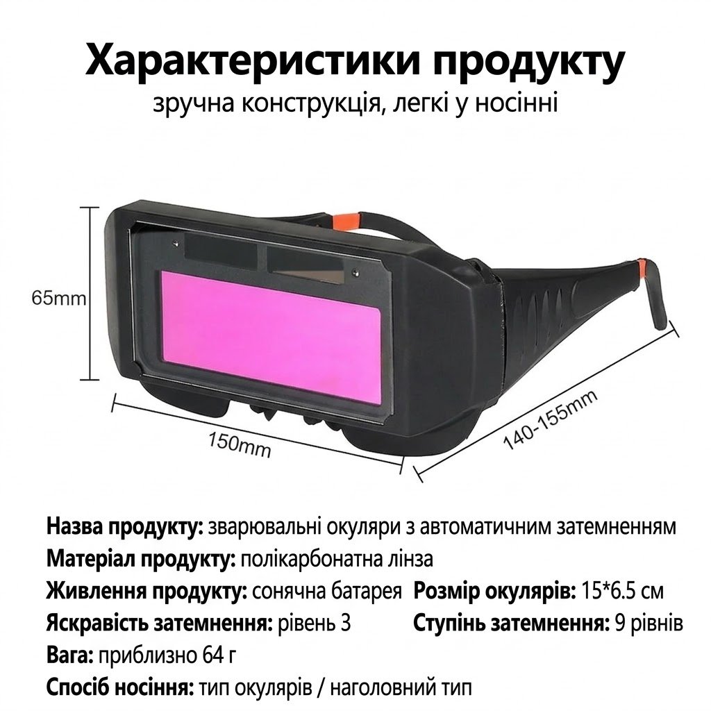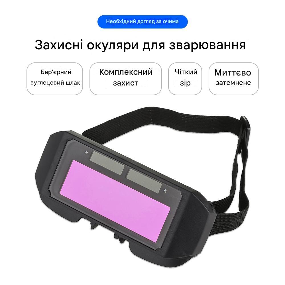Захист очей від травм: ці окуляри з автоматичним затемненням забезпечують захист від ультрафіолетових променів, інфрачервоного випромінювання та відблисків, ефективно захищаючи ваші очі під час роботи.